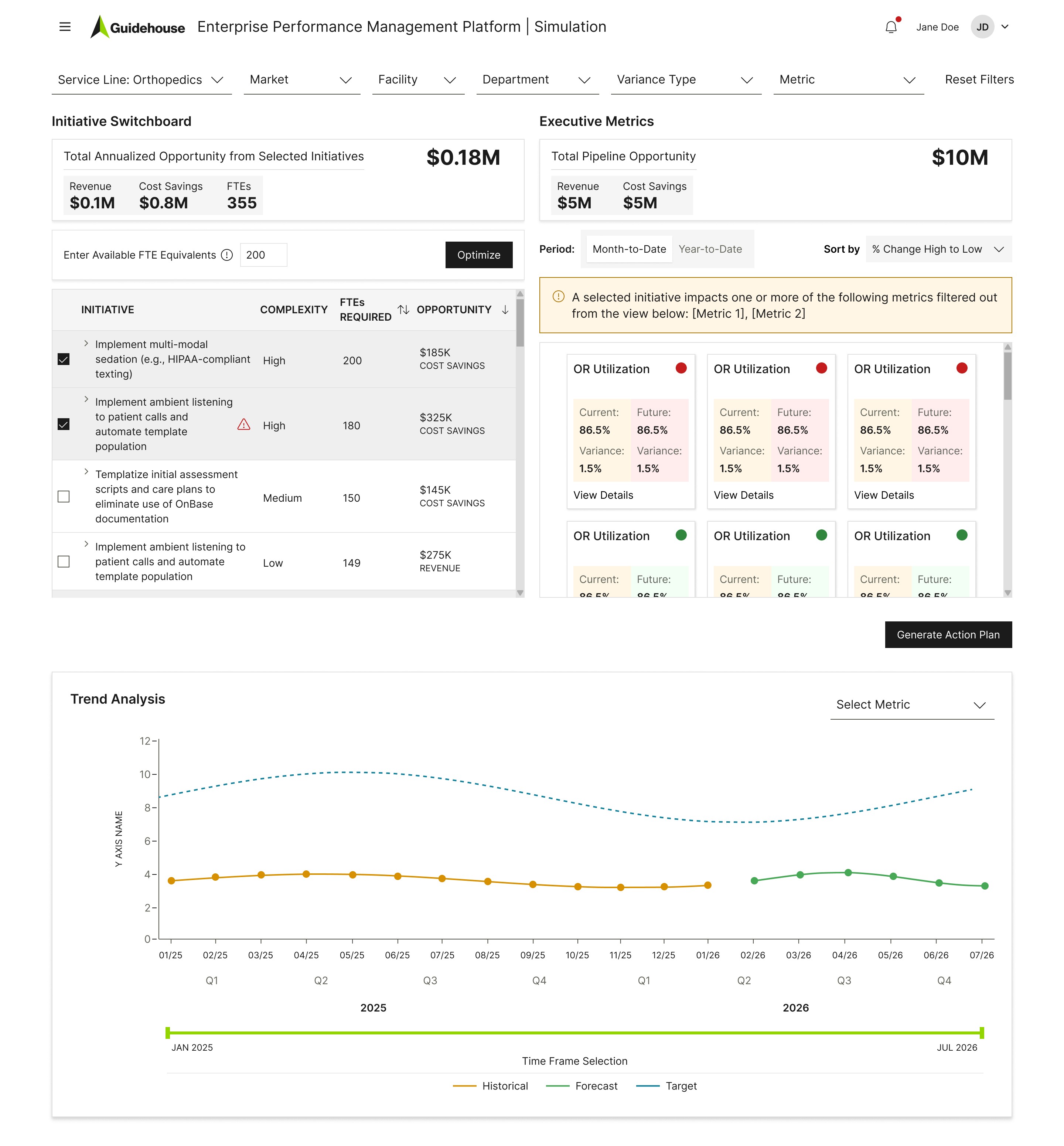 Enterprise Performance Management (EPM) is a healthcare decision-support platform that helps executives review performance, model improvement strategies, and operationalize action plans.